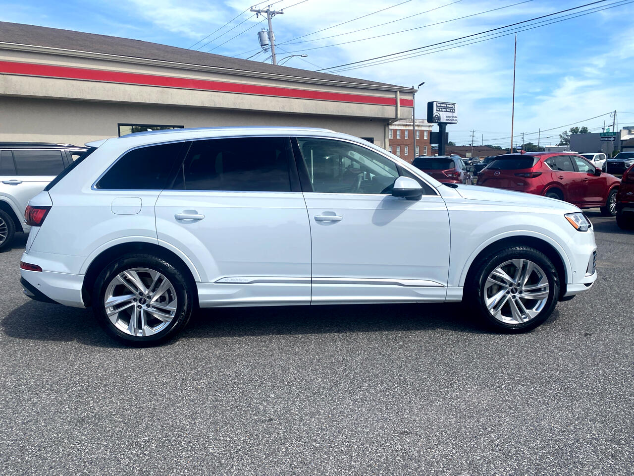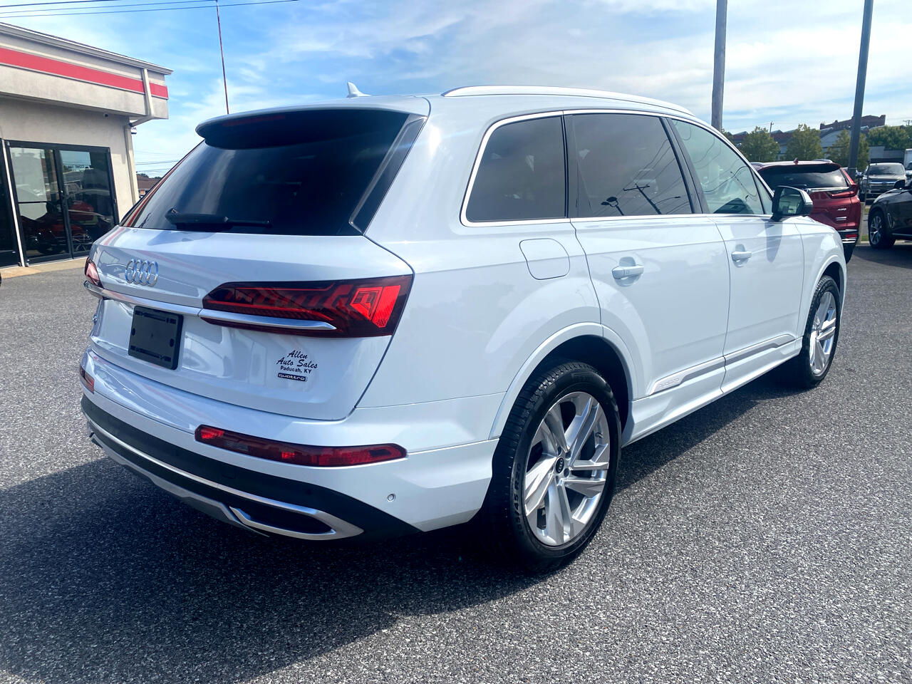 Get ready to experience luxury at its finest with this sleek and sophisticated White 2022 Audi Q7. Buckle up for a thrilling ride powered by a 3.0L TFSI 6 Cylinder engine paired with an 8-Speed Automatic transmission that delivers seamless performance. Whether you're cruising through the city streets or tackling rough terrain, the full-time all-wheel drive ensures a smooth and stable ride. This Q7 is not just about power - it's packed with technology and convenience features to elevate every drive. From the express open/close sliding panoramic sunroof to the Audi Real-Time Traffic display, this vehicle keeps you connected and entertained on the go. The interior is thoughtfully designed with luxurious leather seats, a leather-wrapped steering wheel, and premium finishes throughout. Safety is a top priority with features like Audi parking system plus, side assist blind spot monitoring, and multiple airbags to provide peace of mind for you and your passengers. With its striking design, impressive performance, and abundant features, this Audi Q7 is ready to take you on unforgettable adventures in style and comfort. Don't miss your chance to make this stunning SUV yours today!At Allen Auto Sales...You'll be proud of what you got! With over 60 years in downtown Paducah, Kentucky, Allen Auto Sales is the undisputed champion of customer satisfaction. We offer an extensive inventory of quality used vehicles, backed by our 30 day, 1,000 mile warranty, and available financing that fits your needs.