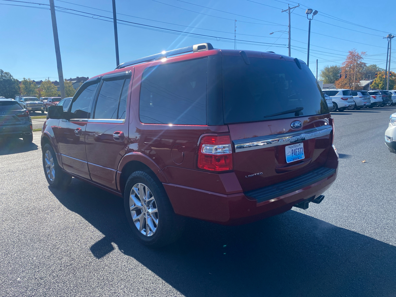 Get ready for a wild ride in this Maroon 2015 Ford Expedition! With a powerful 3.5L V6 EcoBoost engine under the hood, you'll be cruising down the road with ease. Equipped with a Part And Full-Time Four-Wheel Drive system, this Expedition is ready to tackle any terrain you throw its way. The sleek body-colored exterior is complemented by chrome accents and fog lamps that light up the night.Step inside, and you'll find a luxurious interior with leather-trimmed seats, a leather steering wheel, and wood/metal-look accents. The power liftgate makes loading and unloading a breeze, while the SYNC Services Selective Service Internet Access keeps you connected on the go. With a spacious cabin and plenty of storage options, you'll have room for all your gear and gadgets.