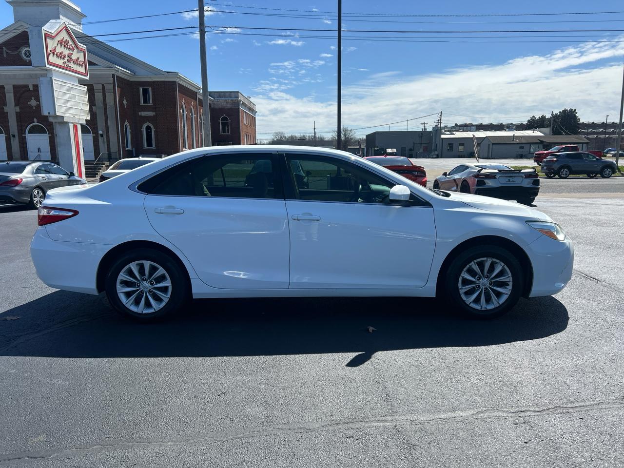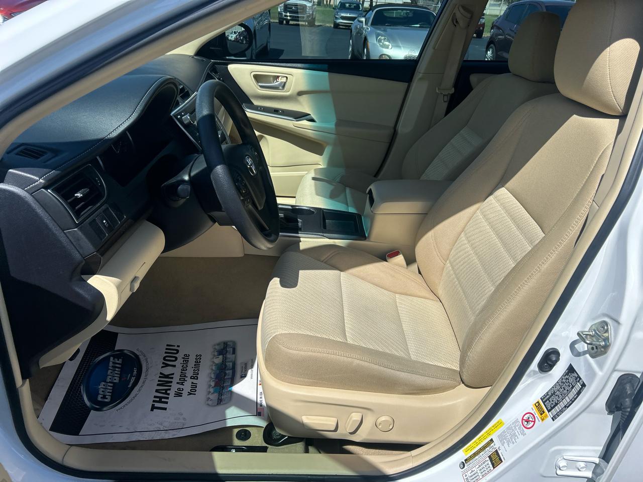Buckle up and get ready to zip around town in this sleek 2016 Toyota Camry! With its powerful 2.5L I-4 DOHC engine and smooth front-wheel drive, this car is perfect for both city cruising and highway adventures. The striking white exterior is complemented by body-colored accents and chrome trim, giving it a modern and sophisticated look.Step inside to discover a spacious and comfortable interior, complete with luxurious cloth upholstery and ample seating for five. Whether you're running errands or hitting the open road, the Camry's cruise control and convenient steering wheel controls make every journey a breeze. Plus, with a responsive steering system and reliable braking, you'll always feel in control behind the wheel.