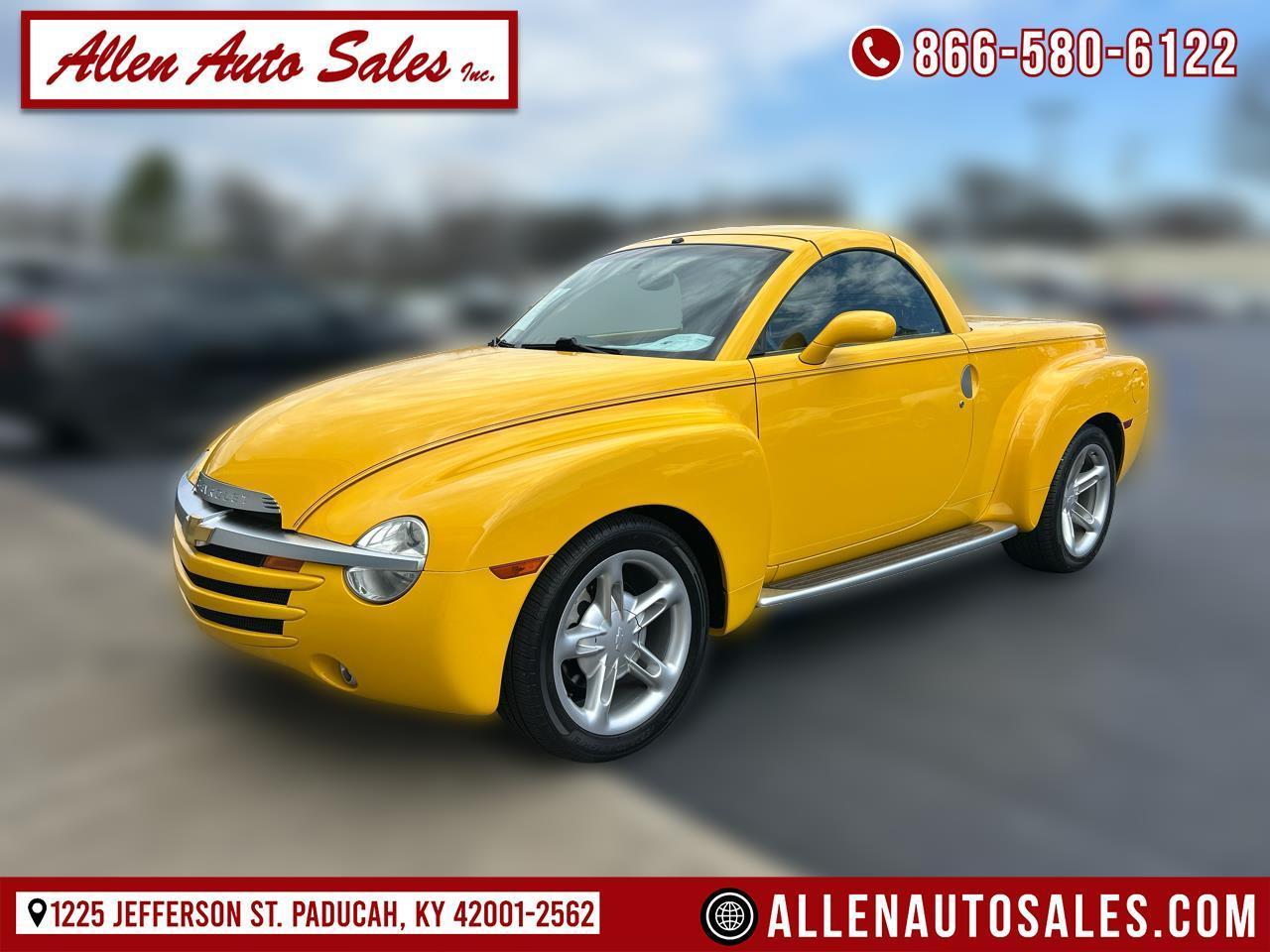 Cruise down the road in vibrant style with this stunning Yellow 2004 Chevrolet SSR! This convertible truck boasts a powerful Vortec 5300 V8 engine under the hood, delivering an exhilarating driving experience. With rear-wheel drive and a Zexel-torsen limited-slip rear differential, this SSR is ready to hit the open road with confidence.Equipped with a sport suspension package and sleek 19-inch front and 20-inch rear touring tires, this Chevy SSR offers a smooth and thrilling ride. The power retractable hard top allows you to enjoy the sunshine at the touch of a button, while the leather-wrapped steering wheel provides a luxurious driving experience.
